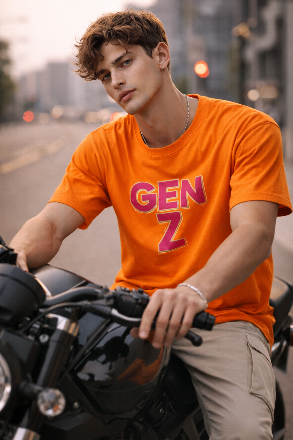 Show off modern street vibes with this trendy “GEN Z” printed t-shirt in a bold orange colorway. Designed for a relaxed and effortless look, it features a soft cotton build with a comfortable oversized fit. The front chest graphic adds personality with a vibrant text print, while the back remains clean for a minimal aesthetic.