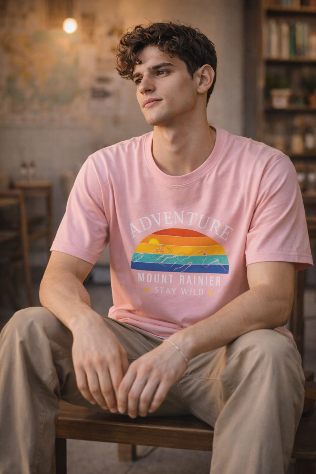 Step into the outdoors spirit with this pastel Adventure Mount Rainier graphic t-shirt, designed for those who love travel, mountains and scenic vibes. Featuring a colorful sunset-style landscape print on a soft pink base, this tee blends aesthetics with comfort.